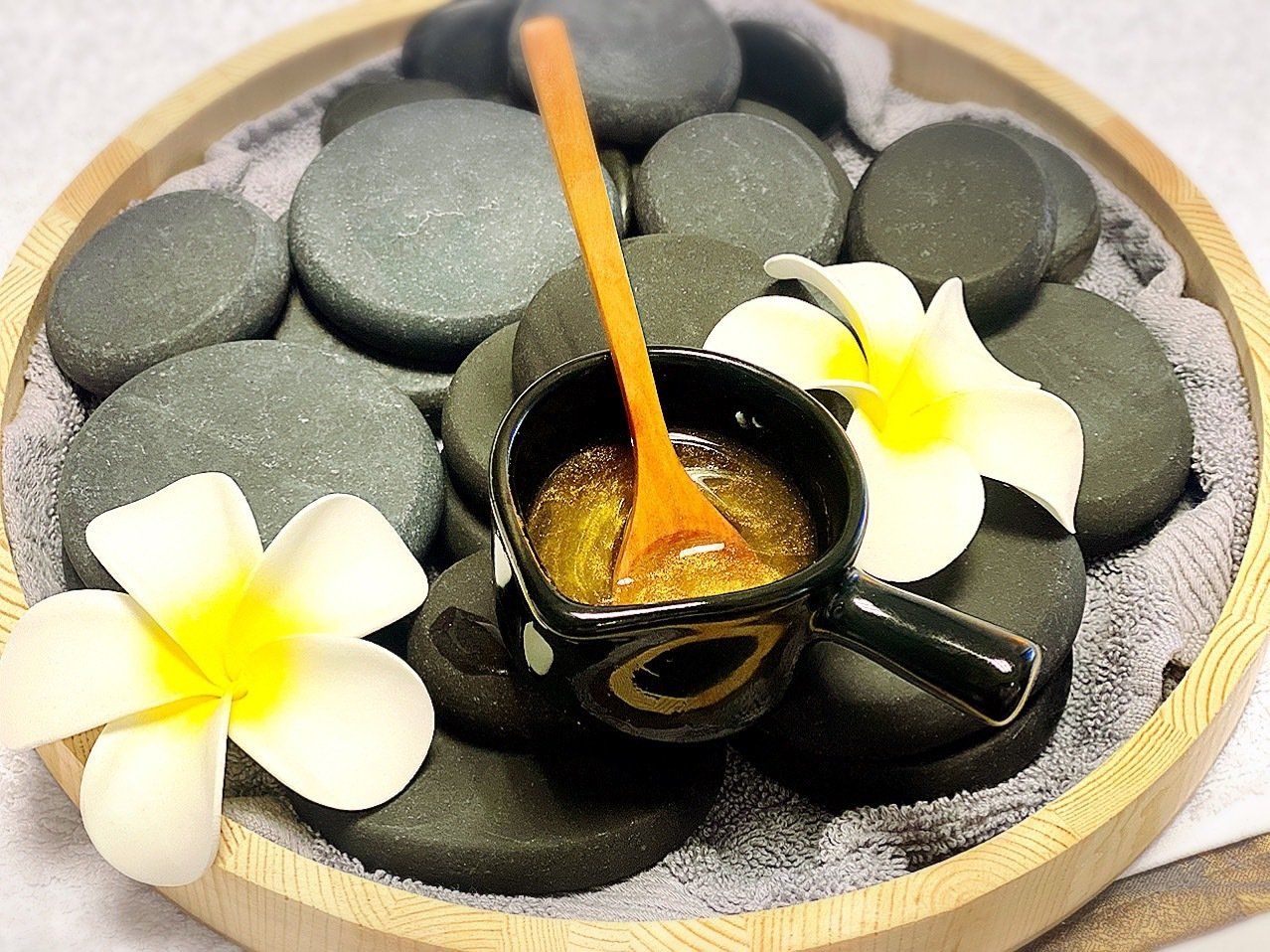 Während einer Thai Öl-Massage werden erhitzte Lavasteine entlang der Energielinie (Wirbelsäule) aufgelegt. Diese Wärme gelangt bis in die tieferen Körperzonen ein und stimuliert so die Blutzirkulation und den Stoffwechsel. Häufig können dadurch Muskeln und Verhärtungen gelöst werden.